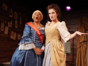 Cheryl Ross as Marianne Angelle and Zoë Darragh Garnett as playwright Olympe de Gouges in “The Revolutionists” at Main Street Players in Miami Lakes. (Photos by Sefanja Richard Galon, courtesy of Main Street Players)