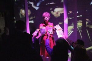 The performers prove to be triple threats; they act, sing, and dance deftly on set designer Melquisedel Dominguez’s minimalist, yet striking set. In the singing department, we must especially mention Toddra Brunson, who plays the film’s director with vitality. In addition, she demonstrates the ability to hold a high note for an impressive length of time.
