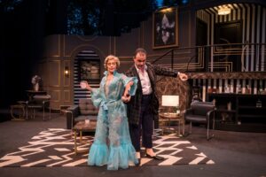 In APT’s elegant, comical production, Colleen Madden doesn’t turn Billie into a stereotype of a ditzy blonde with an exaggerated New York accent. With that said, Madden’s Billie, at least in the beginning, is far from erudite. But the actor imbues Billie with a dignity and a sense of self-worth that makes you care about her. This Billie’s laid-back charm and good-naturedness will win you over. So, too, will her fierce determination at the end not to give in to Brock. At this point, Billie’s more learned, thanks to her copious reading. Moreover, it’s not nearly as easy to push this former chorus girl around.