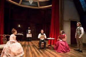 Parliament was preparing to vote in favor of abolishing slavery in British colonies. During Ensemble Theatre’s production, we can hear the chants of what sound like angry throngs outside the Theatre Royal.